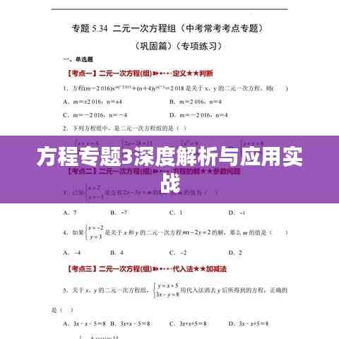 在数学的广阔领域中,方程是不可或缺的一部分,它贯穿数学始终,涉及各个领域,本文将围绕“方程专题3”进行深入解析,探讨方程的实际应用,以及解决方程的一些常用方法和策略。
