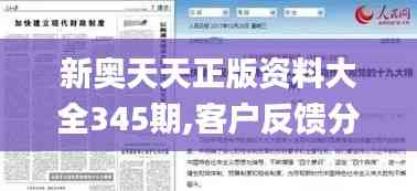 尊敬的读者们,本文旨在介绍新奥天天正版资料大全的第345期,专业展示了澳门特区最新的政策文件、法律法规以及行业动态反馈。在此次的分析报告中,我们将深入详细解读客户反馈,分析存在的问题并针对这些反馈提出可行的改进措施。此期报告对客户满意度的提升及澳门特区政府政策执行具有重要的参考价值。